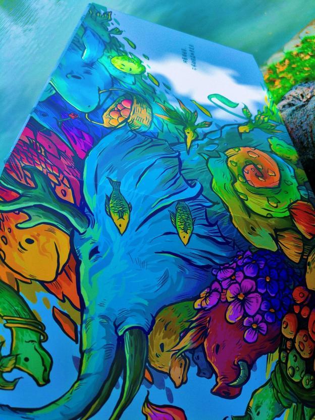 During the conceptualization process, I first thought of the design of two books. One open book displays an illustration of a forest waterfall, while the other, closed book, is adorned with various forest creatures. This design creates a visual contrast and serves as a vehicle for the