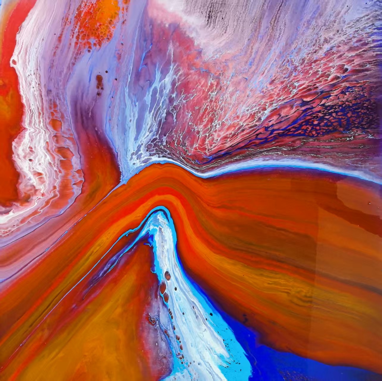 2025, Acrylic paint on canvas, 100×100 cm, Passion of Flames