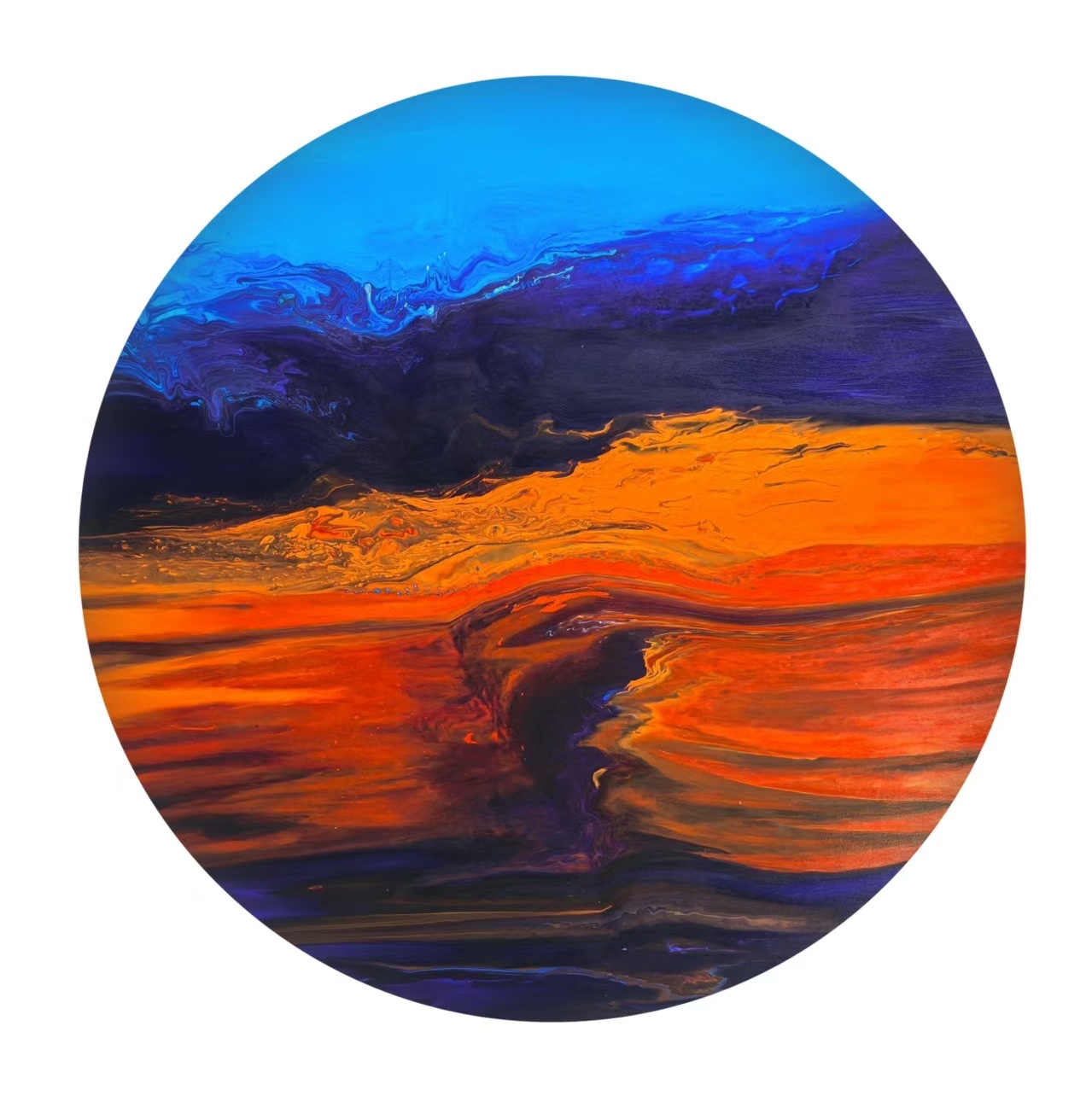2025, Acrylic paint on canvas, 120 cm in diameter, Purple Clouds