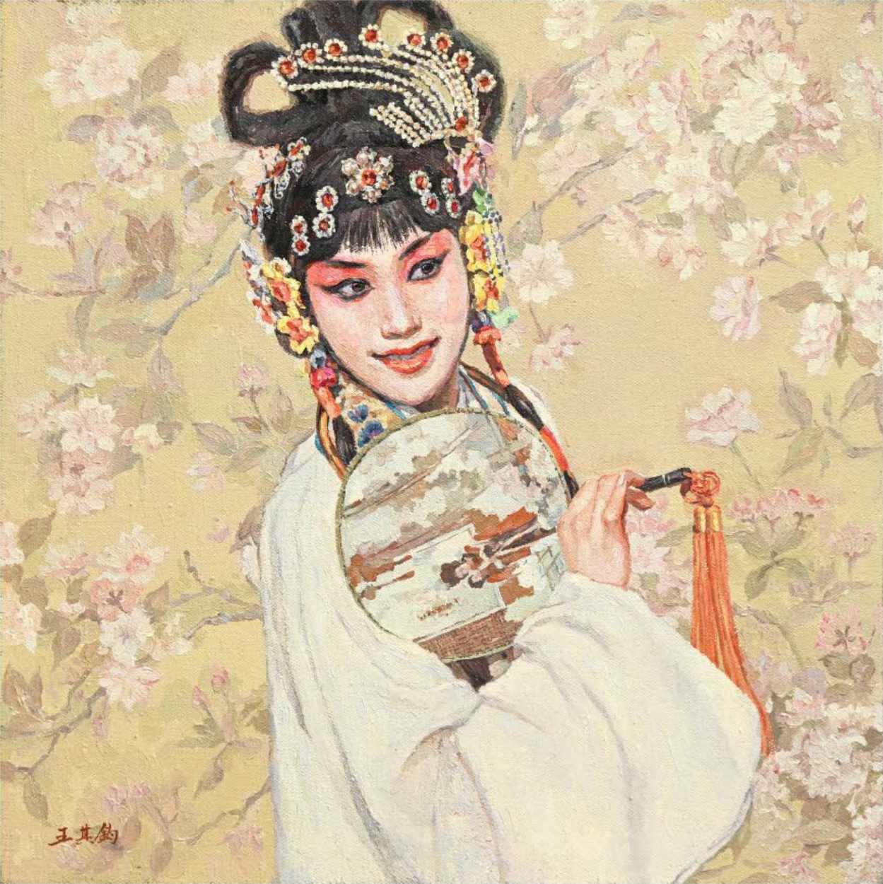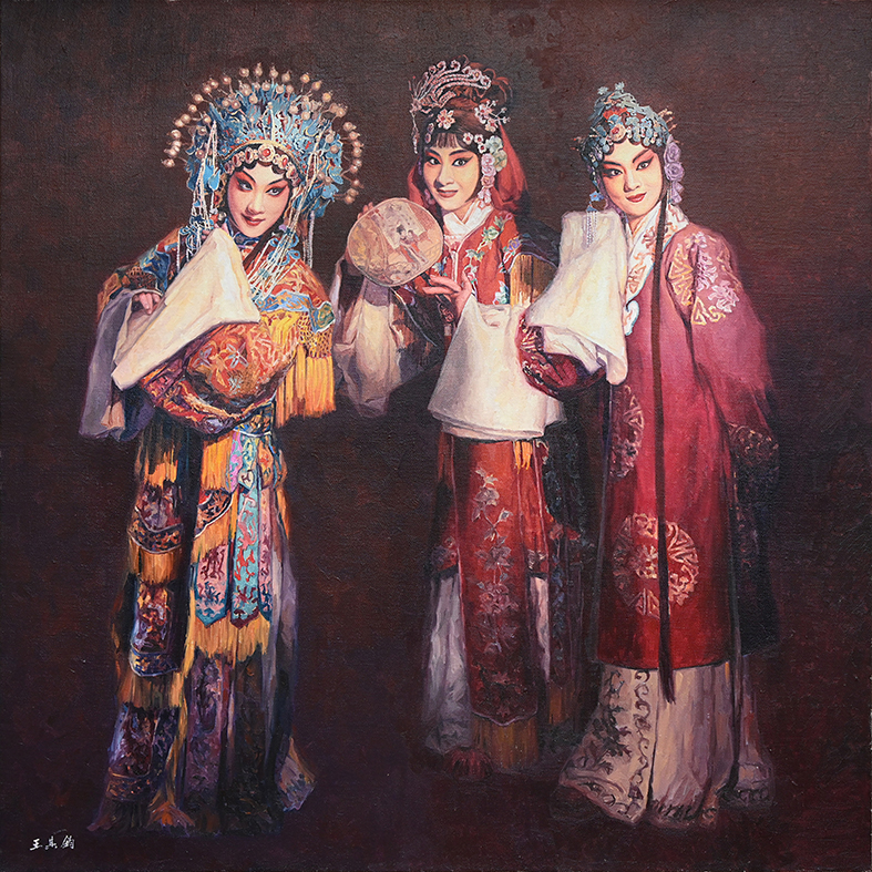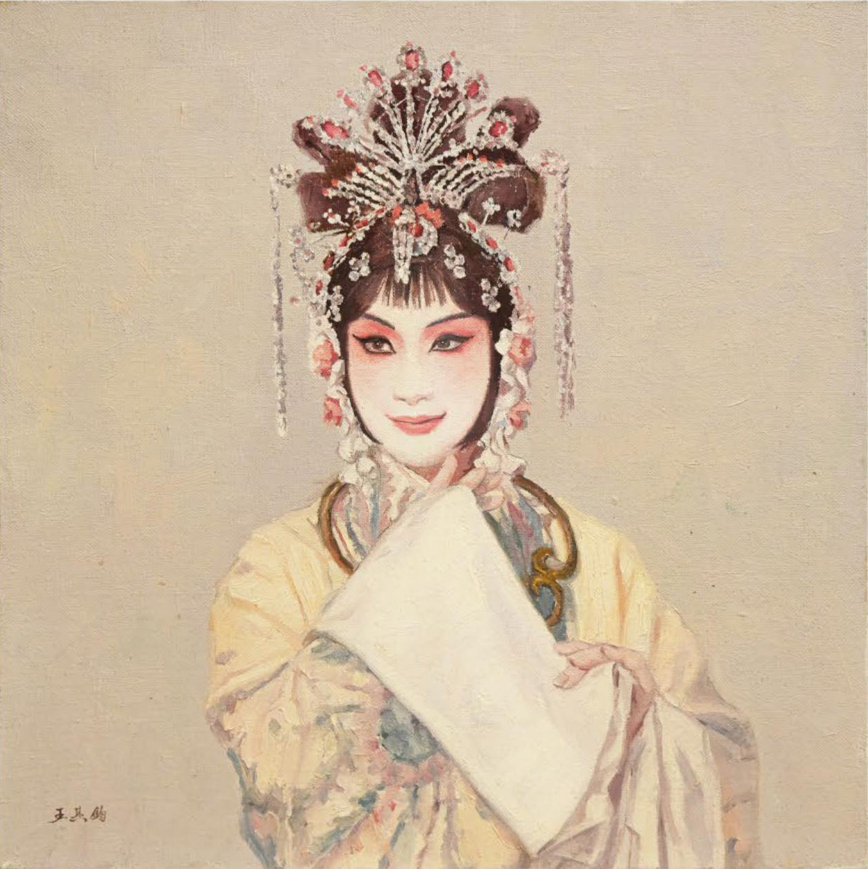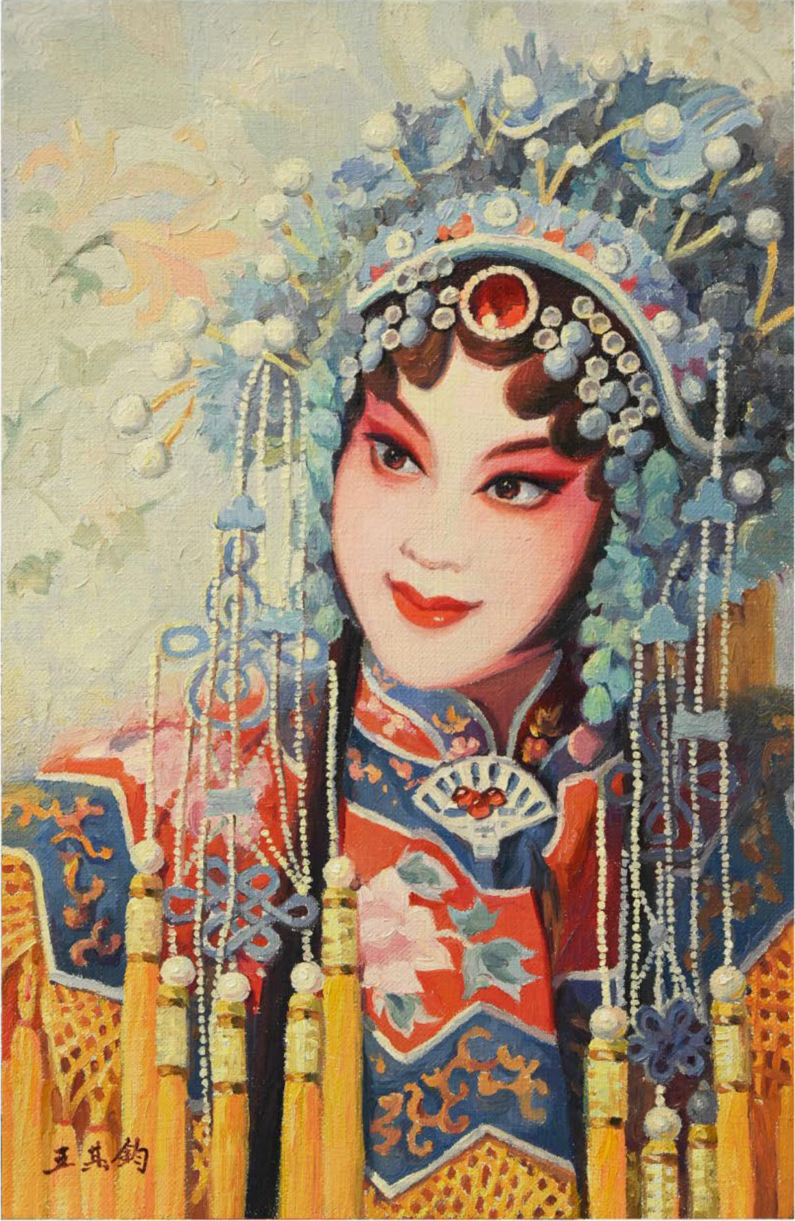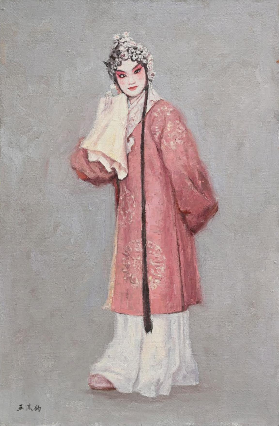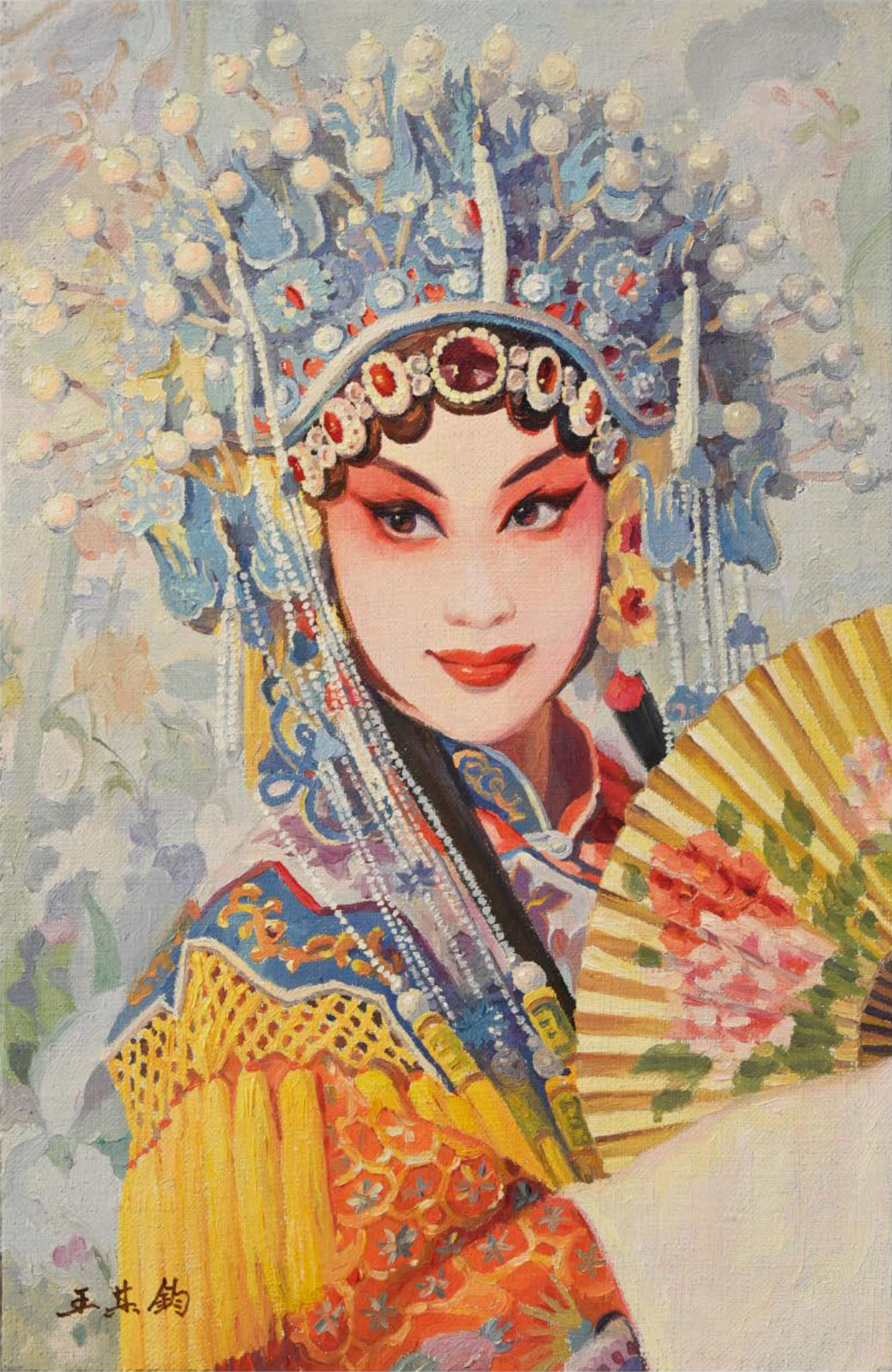 The graceful figure of a Peking Opera dan is immortalized in blended oil paints. Her magnificent opera costume takes center stage.