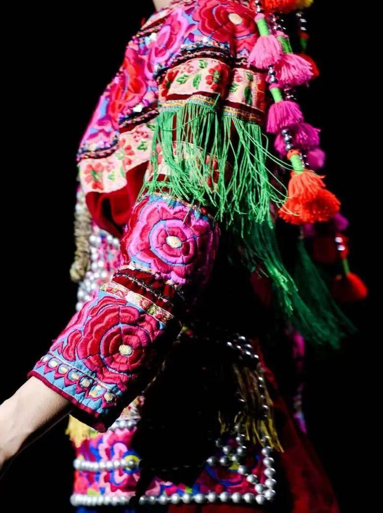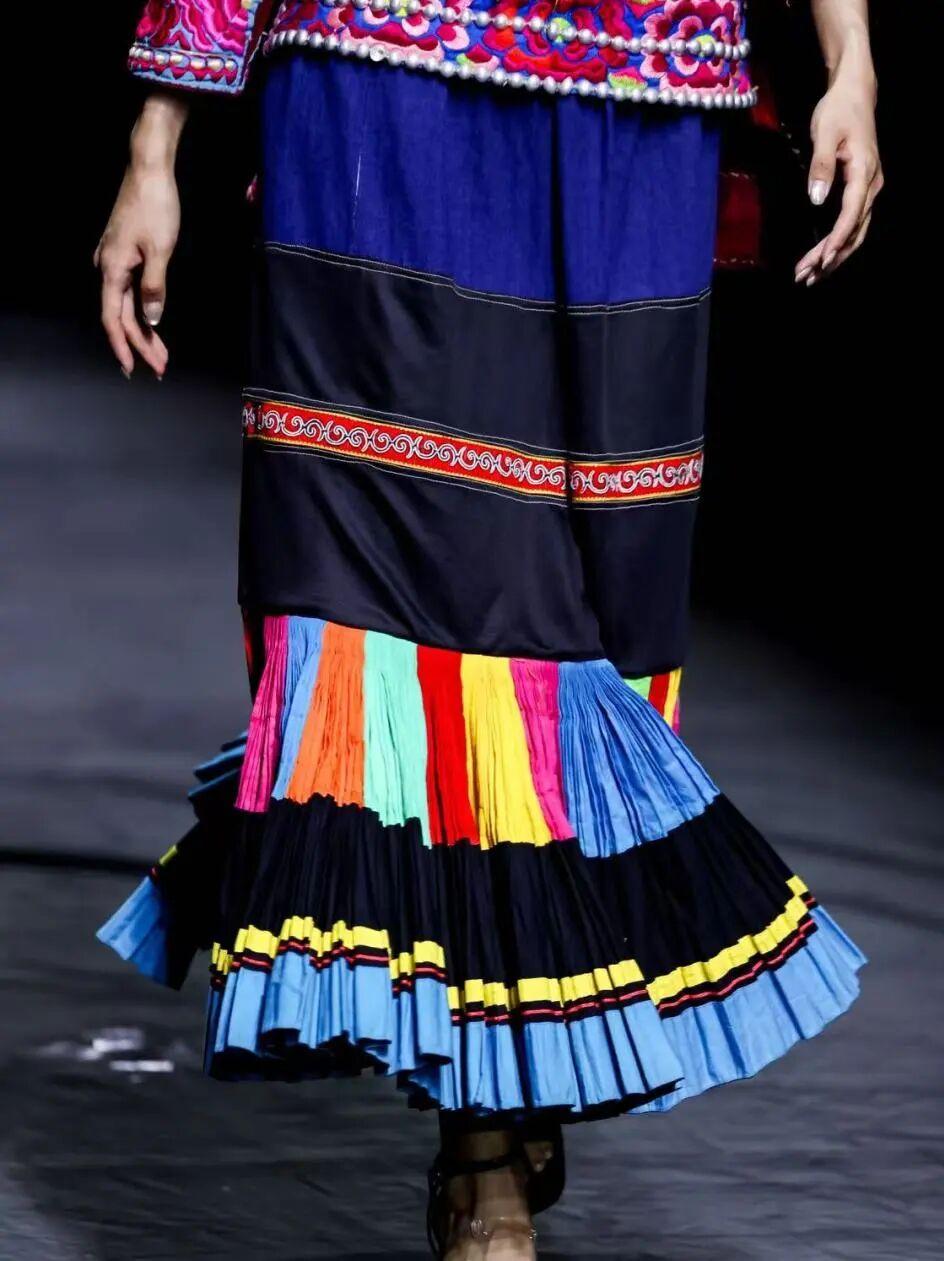 In the Chinese intangible cultural heritage costume display segment, characteristic costumes from five places—Luoyang, Hanzhong, Wuzhishan, Dali, and Chuxiong—tell Chinese stories through clothing as a medium. The Han costumes from Luoyang, with their elegant forms and profound ritual charm, embody the thousand-year-old civilization of Chinese clothing; the Qiang costumes, carrying the fresh breeze of mountains and fields, have embroidery patterns that hold deep ethnic imprints and auspicious meanings; the splendid Li brocade from Hainan showcases three thousand years of intangible cultural heritage craftsmanship, with plant-dyed patterns weaving magnificent legends of the South China Sea; the Bai costumes from Dali encapsulate the "wind, flowers, snow, and moon," interpreting the poetic essence of nature and life philosophy through needles and threads; the Yi costumes from Chuxiong, with their gorgeous patterns and exquisite silver ornaments, radiate the profound and unique charm of Yi culture.